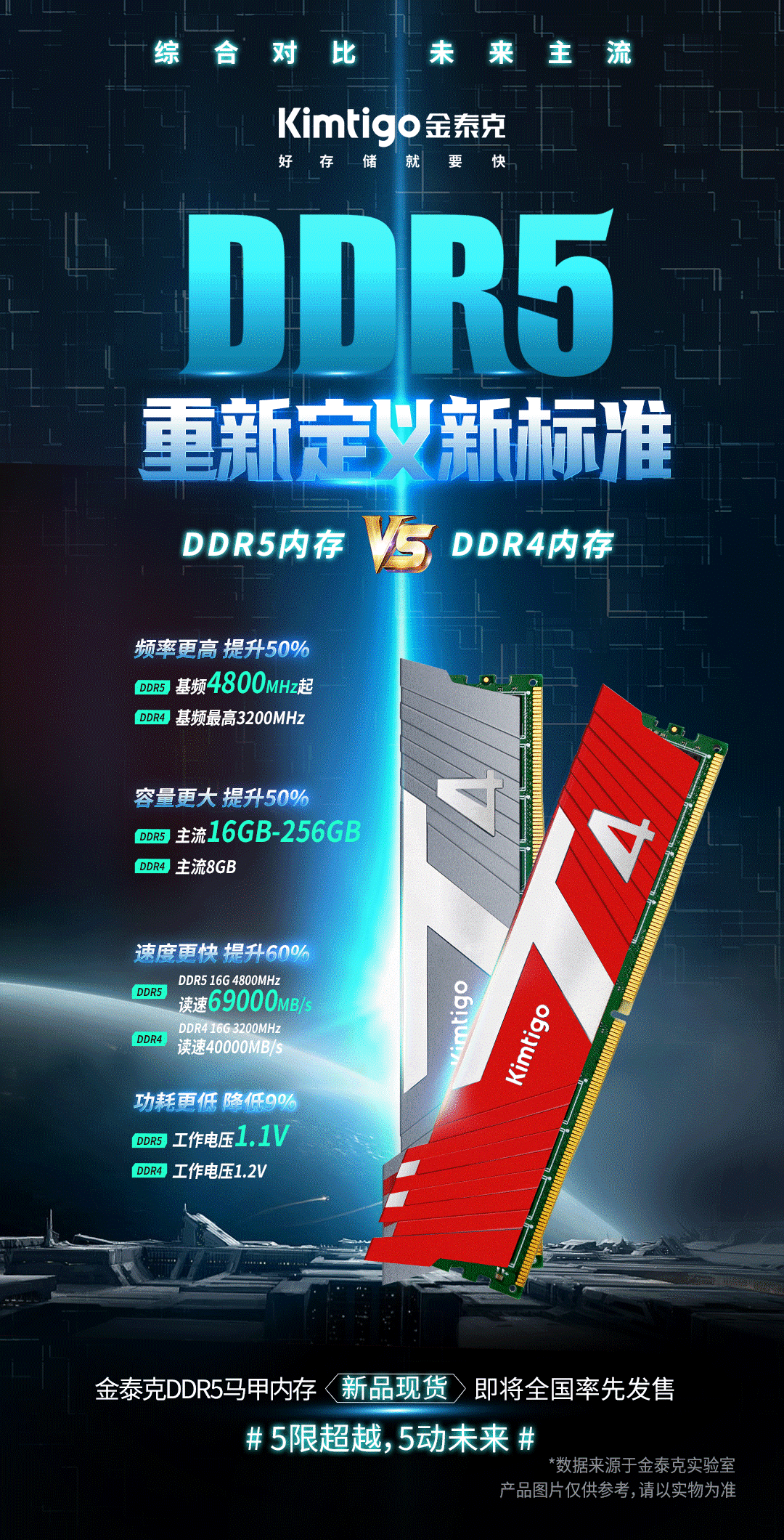 DDR5重新定义新标准,给行业和消费者带来无限可能。相信随着技术的持续导入,未来,金泰克将陆续推出更多的DDR5产品规格和技术服务,并投入到更多的应用场景中,为各行各业客户持续赋能!